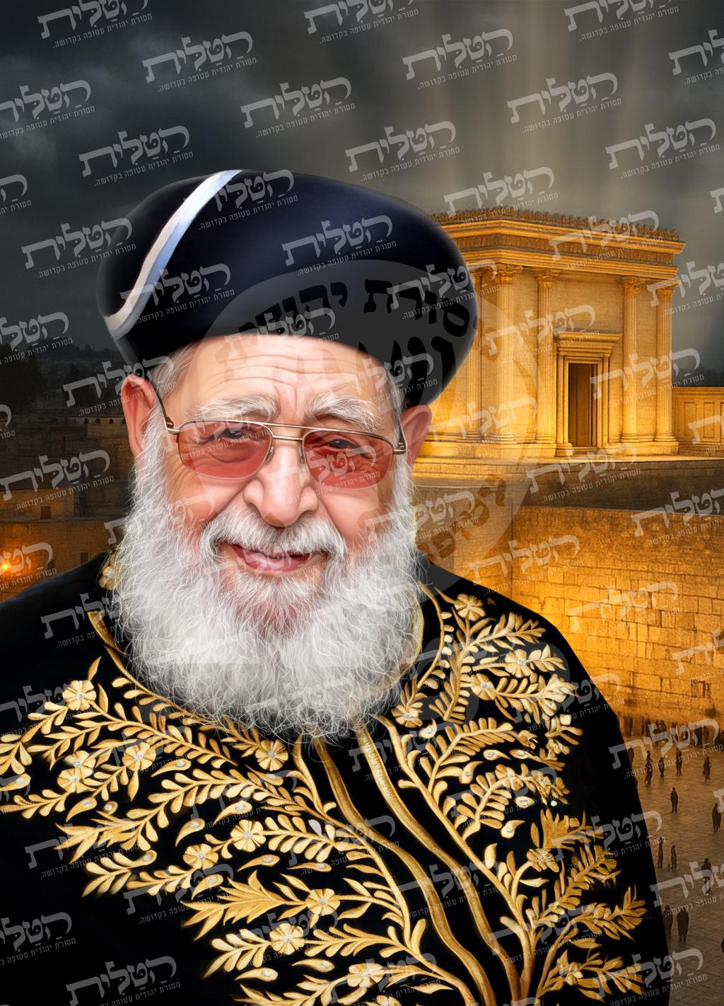 דף הבית » חנות » תמונות זכוכית וקנבס » תמונת זכוכית הרב עובדיה רקע בית מקדש דגם 185
